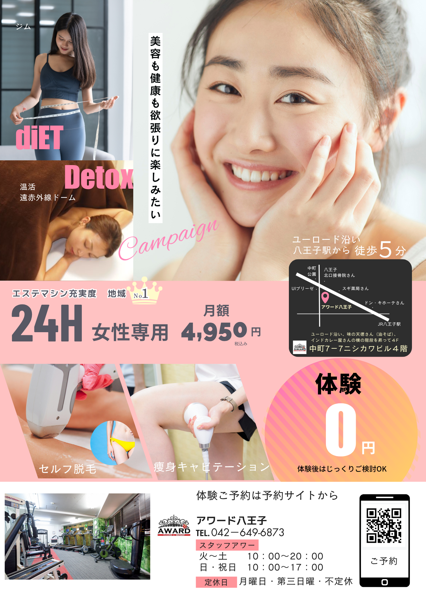 八王子 八王子ジム 24H 温活デトックス・脱毛・ホワイトニング・セルフエステ